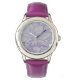Add a pop of color and floral enchantment to every moment with this stylish personalized kids' watch! Featuring a vibrant plum leather strap and a charming hand-drawn floral design, this eye-catching accessory is perfect for kids who love bold, beautiful style.