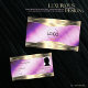 The design features shimmering purple marble colors with noble decorative gold borders.