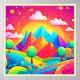 Immerse yourself in a vibrant and playful cartoon landscape with this captivating artwork featuring colorful mountains, trees, and a vibrant sky (This Design Made With AI). Place Order Today and Embrace the Joy of Shopping!