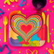 Complete your party table setting with these eye-catching paper plates. The surface showcases the beautiful rainbow layered heart in bright rainbow stripes and a modern graphic. The concentric pattern and vibrant multi-color make food presentation fun. These disposable plates offer a convenient pop art style and abstract shapes, perfect for your next event with a groovy design.