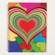 Organize your life with this spiral planner featuring the colorful layered heart love symbol on the cover. The rainbow stripes and concentric pattern make planning cheerful and inspiring. This planner offers plenty of space for notes while showcasing a groovy design and vibrant multi-color abstract shapes with a modern graphic touch.
