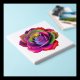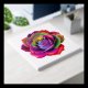 A stunning digital illustration of a rose with vibrant rainbow colors, blending shades of red, pink, purple, blue, green, and yellow. The intricate petal design stands out against a sleek black background, creating a mesmerizing and eye-catching piece of art perfect for decor or creative inspiration.