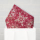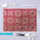 This exquisite tissue paper is adorned with a classic damask pattern, featuring a vibrant red background interlaced with gold ornamental designs. The intricate motifs are a harmonious blend of floral and geometric shapes, creating a symmetrical tapestry that exudes elegance and sophistication.