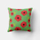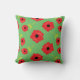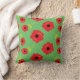 A delightful design showcasing bold red poppies with black centers set against a fresh green polka dot background. The lively contrast and playful arrangement create a cheerful and eye-catching aesthetic.