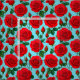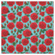 Vibrant Red Roses on a Light Blue Background Fabric