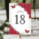 Vibrant Red Roses Silver Butterflies Birthday Table Number