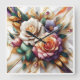 Vibrant Roses With Leaves on a Marble Background Square Wall Clock