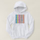 This hoodie features a bold and colorful design that spells out "SENIOR" in a unique and eye-catching way. The word "SENIOR" is repeated four times in a grid format, with each letter occupying its own block. The letters are presented in a variety of bright colors including blue, yellow, pink, and peach, each set against a black and white checkered background. Additionally, the numbers "2025" are interspersed within the grid, adding a playful and dynamic element to the design. This hoodie is perfect for seniors who want to showcase their class pride with a vibrant and stylish look.