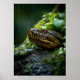 A striking illustration of a snake resting on wet rocks in a lush rainforest, with raindrops glistening on its scales. Perfect for wildlife lovers, nature-inspired decor, and exotic animal art collections.
