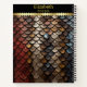 A striking display of snakeskin reveals rich textures and a blend of colors. The scales shimmer with shades of red, gold, and brown, showcasing nature's artistry in detail. MONOGRAM