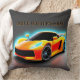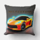 Vibrant Sports Car with Neon Glow Racing Car Throw Pillow