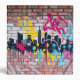 This artwork features a vibrant city skyline spray-painted with rich, energetic street art colors. The design incorporates spray paint textures and precise stenciled elements, creating a chaotic and dynamic urban style. The bold use of color and layered techniques reflect the raw, expressive nature of street art, capturing the city's lively atmosphere.