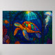 Vibrant Stained Glass Sea Turtle Ocean Design Poster