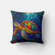Vibrant Stained Glass Sea Turtle Ocean Design Throw Pillow