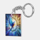 Vibrant Stained Glass Window Colorful Bluebird Keychain
