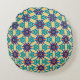 Vibrant Starburst Geometric Pattern Cushion. Add a touch of vibrant elegance to your space with this mesmerizing geometric pattern featuring striking starbursts in a rich blend of blue, red, yellow, and green. This intricate design showcases an interlocking array of stars and shapes, creating a visually captivating and dynamic artwork. Perfect for a wide range of products, from home decor to fashion accessories, this pattern brings an energetic and artistic flair to any item.