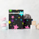 This eye-catching pattern features colorful stars and snowflakes on a black background. Perfect for adding a touch of whimsy and magic to your projects.