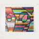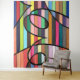 A lively mix of horizontal stripes in red, teal, orange, pink, and yellow is energized by sweeping black swirls that loop and twist across the design. The strong curves add a sense of motion, almost like calligraphy dancing over a rainbow of color. With its striking contrasts and playful rhythm, this modern abstract feels both bold and uplifting, perfect for catching the eye.