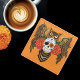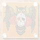 Vibrant Sugar Skull Owl Red Roses Glass Coaster