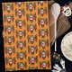 This bold sugar skull owl design blends Día de los Muertos symbolism with striking gothic style. A detailed brown owl with outstretched wings frames a decorative sugar skull adorned with colorful floral accents, a diamond motif, and vibrant red roses. Set against a rich orange background, this artwork captures a dramatic mix of wisdom, mystery, and romantic gothic beauty.