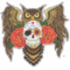 Vibrant Sugar Skull Owl Red Roses Sticker