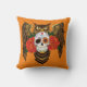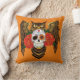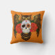 Vibrant Sugar Skull Owl Red Roses Throw Pillow