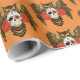 Vibrant Sugar Skull Owl Red Roses Wrapping Paper