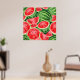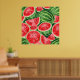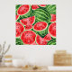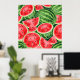 Add a splash of refreshing summer color to your walls with this vibrant watermelon slices poster. Featuring a bold pattern of juicy red fruit and striped green rinds, this high quality print is perfect for kitchen decor, a childs bedroom, or a bright patio area.