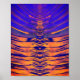 A mesmerizing abstract image with a symmetrical pattern in vibrant blue and orange hues. The flowing lines and bold colors create a dynamic and eye-catching composition.