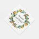 Inspired by elegant mediterranean and italian citrus orchard, this elegant wedding napkins features your name and wedding date sourronded by a garland of vibrant branches of mandarin citrus and clementine, ivory blossom and leaves.