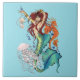 Vibrant Teal Fantasy Mermaid Illustration Ceramic Tile