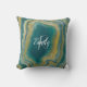 Vibrant Teal Green Yellow Agate Monogram Decor Throw Pillow