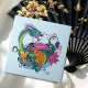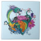 Vibrant Teal Oriental Koi Dragon Lotus Flower Ceramic Tile
