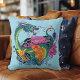 Vibrant Teal Oriental Koi Dragon Lotus Flower Throw Pillow