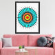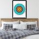 This premium stretched canvas print features a captivating modern mandala with a high-contrast electric blue and orange color palette. The intricate geometric symmetry creates a bold focal point, making it an ideal artistic statement for any contemporary home or office interior.