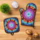 Vibrant Tie Dye Kaleidoscope Rainbow Mandala Oven Mitt & Pot Holder Set