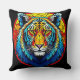 Vibrant Tiger Stained Glass Throw Pillow