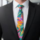 Bold tropical colors and expressive abstract shapes combine in a lively pattern that brings vibrant energy to any outfit. This tie is perfect for summer events, parties, vacations, or any time you want to stand out. Pair it with a crisp shirt or casual blazer to add a splash of fun and personality.