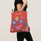 Vibrant Tropical Floral Red Personalized Script Tote Bag