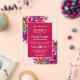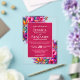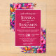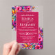 Invite your loved ones to share in your joy on your wedding day with these gorgeous acrylic invitations. The stylish tropical floral design features your names prominently displayed in bold letters while the introduction and other notes feature fancy script calligraphy with swashes on the ends of the letters. The text is displayed on a vibrant magenta or hot pink colored background. The outside border of the invite is transparent acrylic with tropical flowers and plants including hibiscus and bird of paradise decorating the corners. Elegant, classy, sophisticated and beautiful, these wedding invitations are perfect for a destination wedding and exotic location.
