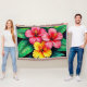 Dive into a world of vibrant color and exotic beauty with this stunning artwork. A unique collaboration between advanced AI and a skilled artist, this captivating design features a radiant bouquet of hibiscus blooms and lush palm leaves. The vivid pink, red, and yellow flowers pop against a dark background, creating a bold and tropical masterpiece. Perfect for bringing the essence of summer and a serene island paradise into any style, this piece is a testament to the seamless fusion of technology and artistic flair. It’s a beautiful celebration of nature's most enchanting flora.