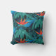 vibrant tropical leaves and orange flowers throw pillow
