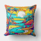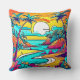 Vibrant Tropical Sunset Beach Throw Pillow