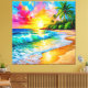 Vibrant Tropical Sunset Painting with Waves Canvas Print
