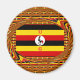Ugandan Flag: The central motif features the flag with six horizontal stripes (black, yellow, red, black, yellow, red) and a central gray crested crane, which is Uganda's national symbol. This aligns perfectly with the "Uganda" theme.