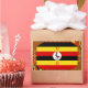 Ugandan Flag: The central motif features the flag with six horizontal stripes (black, yellow, red, black, yellow, red) and a central gray crested crane, which is Uganda's national symbol. This aligns perfectly with the "Uganda" theme.