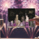 Celebrate the momentous 250th Anniversary with this truly elegant and unique invitation! This exquisite design showcases a watercolor illustration of the iconic New York City skyline, bathed in a sophisticated pink-purple (or plum/amethyst) tint that gives the buildings and the majestic Statue of Liberty a luxurious, jewel-toned glow. Golden fireworks illuminate the night sky, marking the Semiquincentennial from 1776 to 2026.