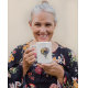 Rendered in a modern, splattered watercolor style, this botanical artwork captures the ethereal beauty of nature. It makes a wonderful gift for gardeners, art enthusiasts, or anyone who enjoys a splash of color with their morning brew.