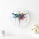 Vibrant Watercolor Dragonfly Large Clock