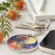 A vibrant keychain featuring a watercolor painting of a girl and moon.